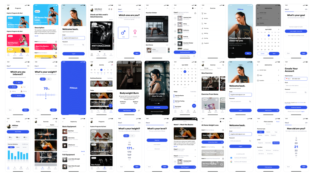 Fitleus – Fitness Mobile App UI Kit for Figma is a comprehensive and beautifully designed set of templates and elements specifically created to create any fitness, cross-fit, gym, or workout mobile app design faster.